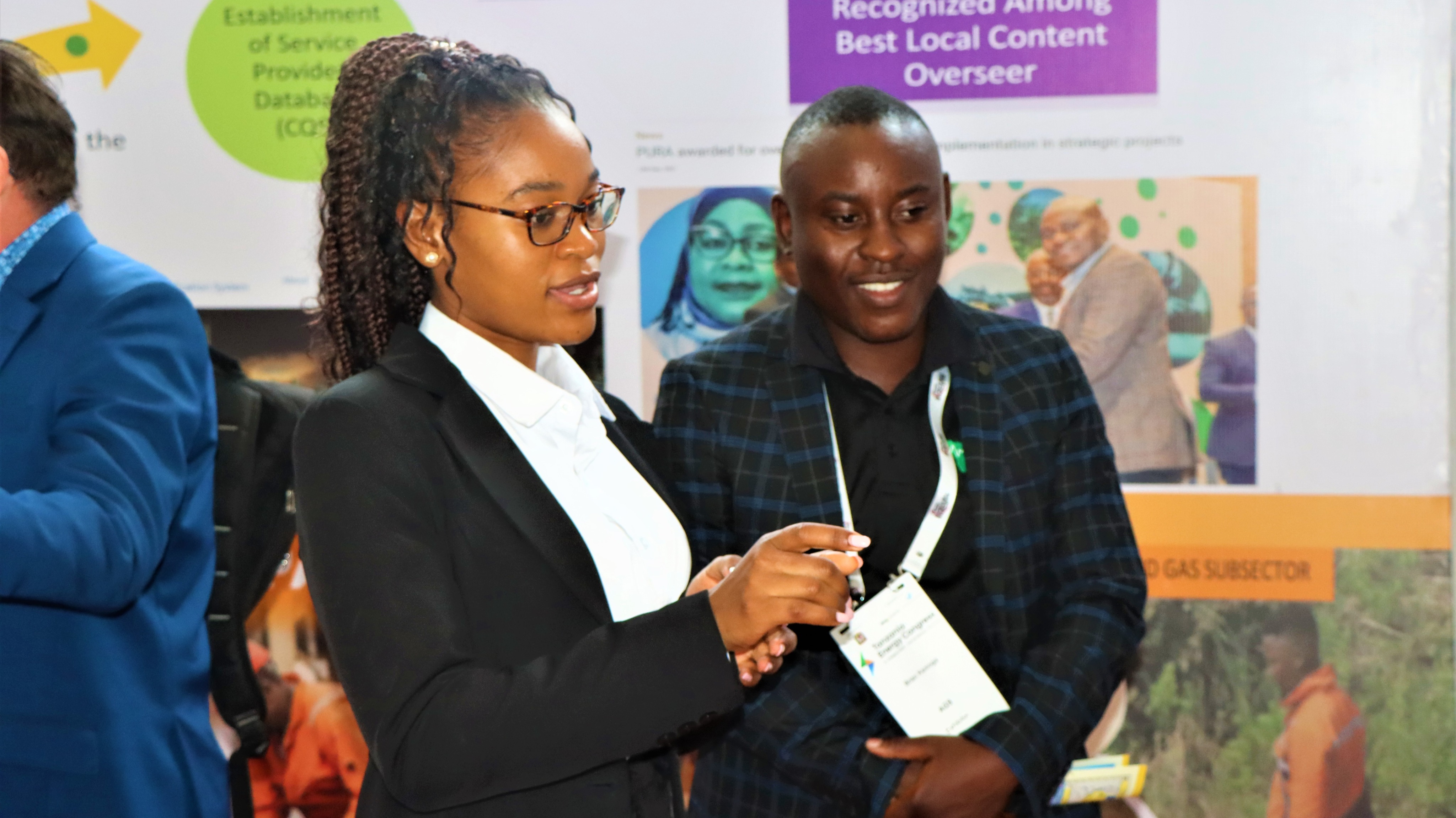 The Former Vice President of the United Republic of Tanzania, H.E. Dr. Philip Mpango (centre), listening to the Director General of PURA, Eng. Charles Sangweni (right) during his visit to PURA’s Data Room at the East African Petroleum Conference and Exhibition 2025 (EAPCE’25) held in Dar es Salaam, Tanzania. The second left is the former Deputy Prime Minister and Minister for Energy, Hon. Dr. Doto Biteko and East African Community Secretary General, H.E. Veronica Nduva (second right).