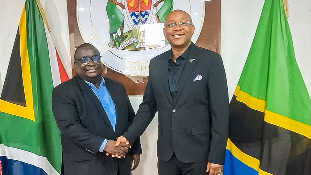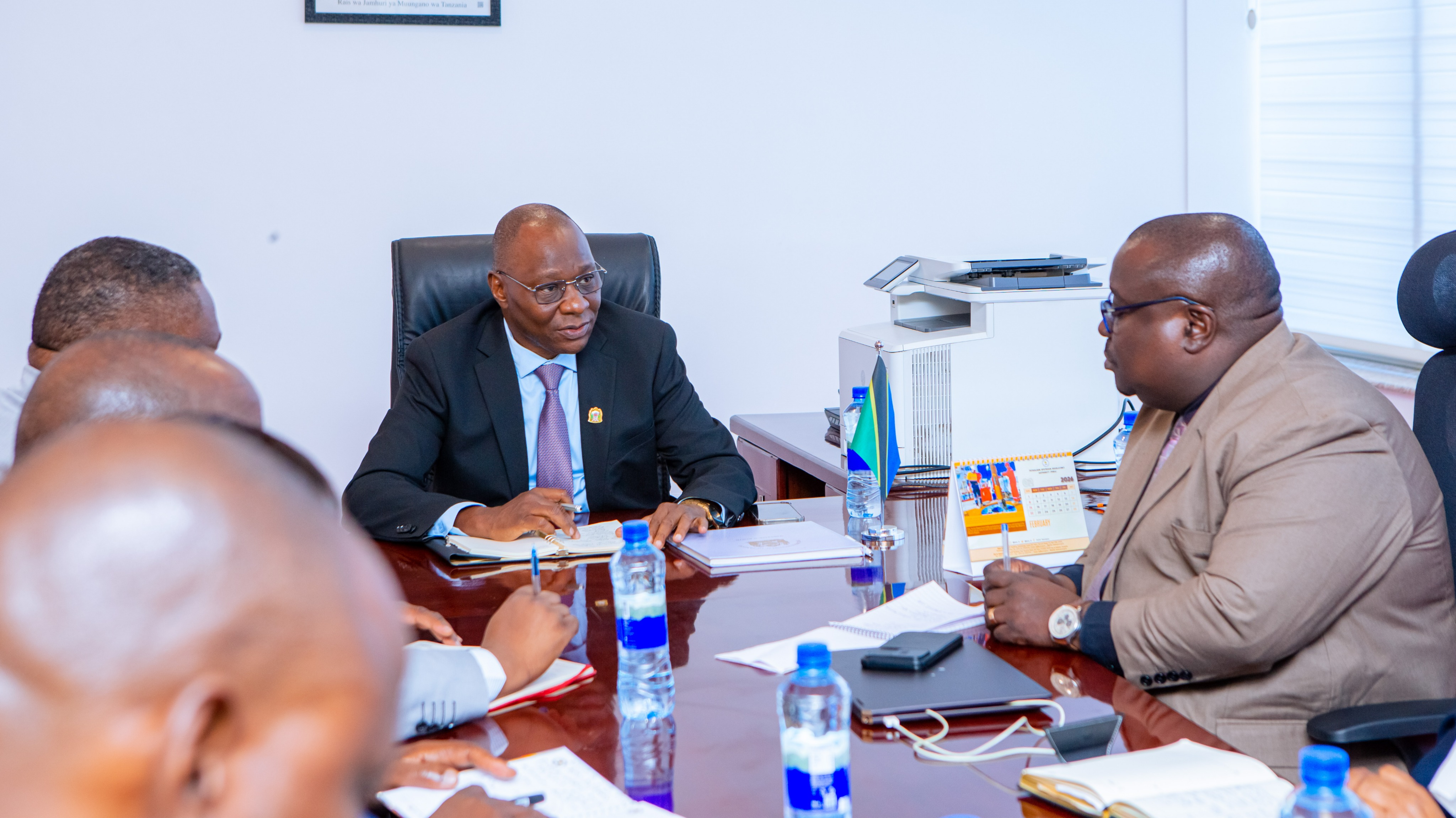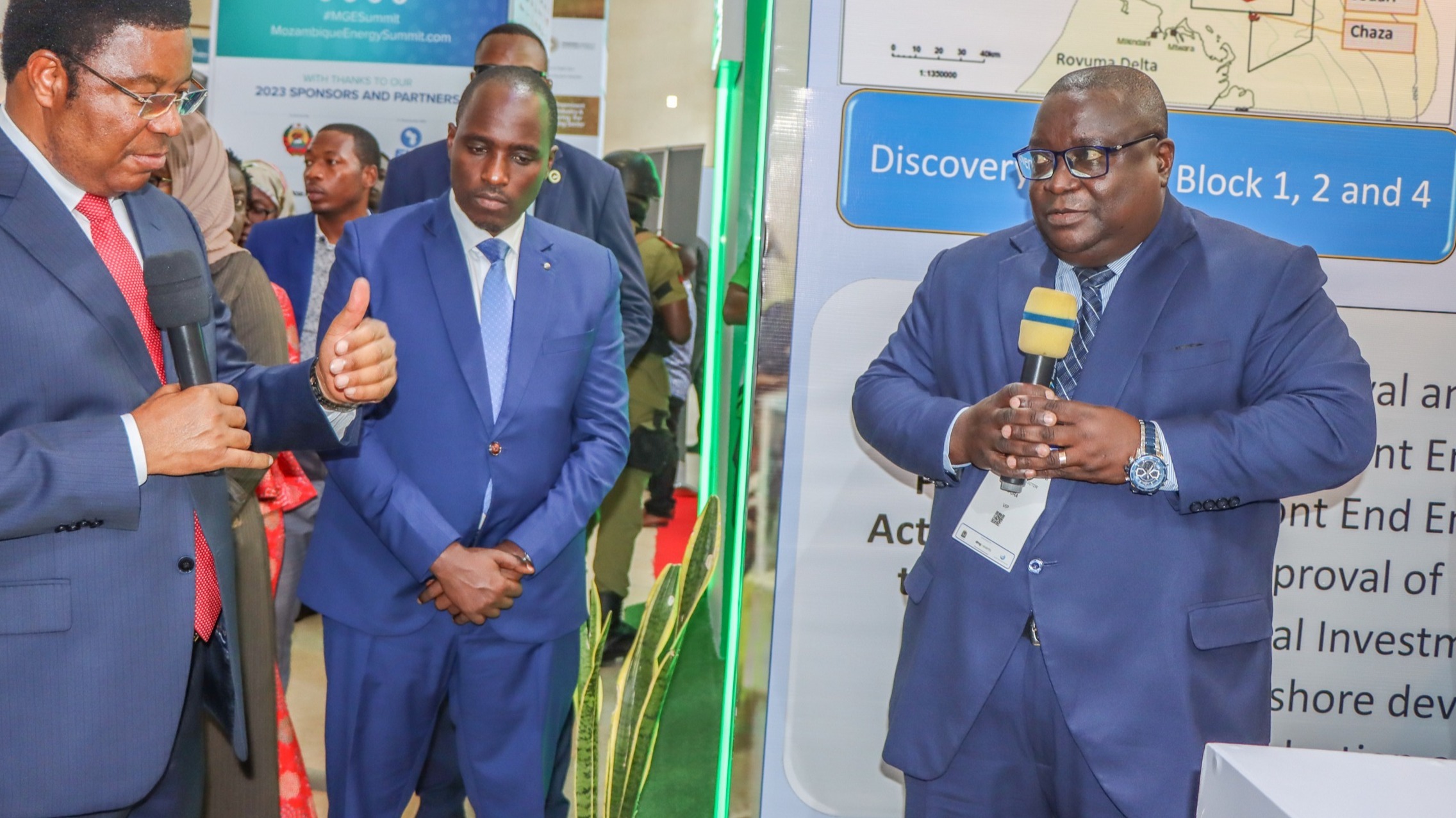 The Former Vice President of the United Republic of Tanzania, H.E. Dr. Philip Mpango (centre), listening to the Director General of PURA, Eng. Charles Sangweni (right) during his visit to PURA’s Data Room at the East African Petroleum Conference and Exhibition 2025 (EAPCE’25) held in Dar es Salaam, Tanzania. The second left is the former Deputy Prime Minister and Minister for Energy, Hon. Dr. Doto Biteko and East African Community Secretary General, H.E. Veronica Nduva (second right).
